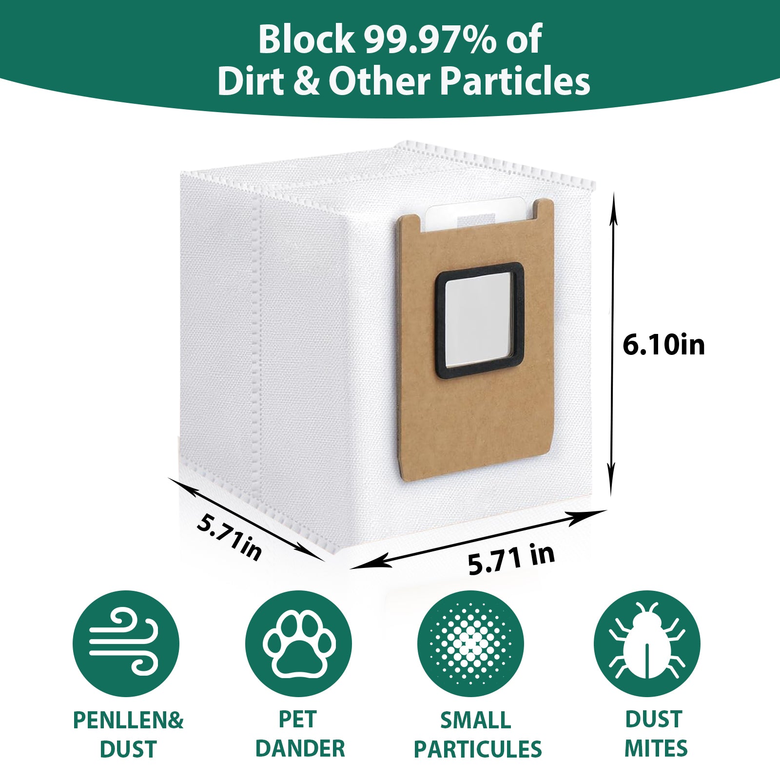【OPTIMAL CLEANING PERFORMANCE】Designed to maintain strong suction even when full, these bags ensure consistent airflow and easy installation—simply insert securely into the vacuum dock