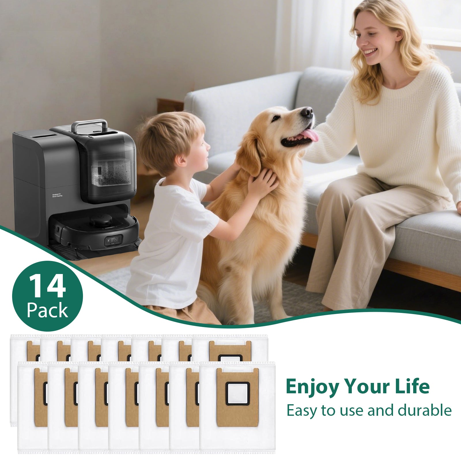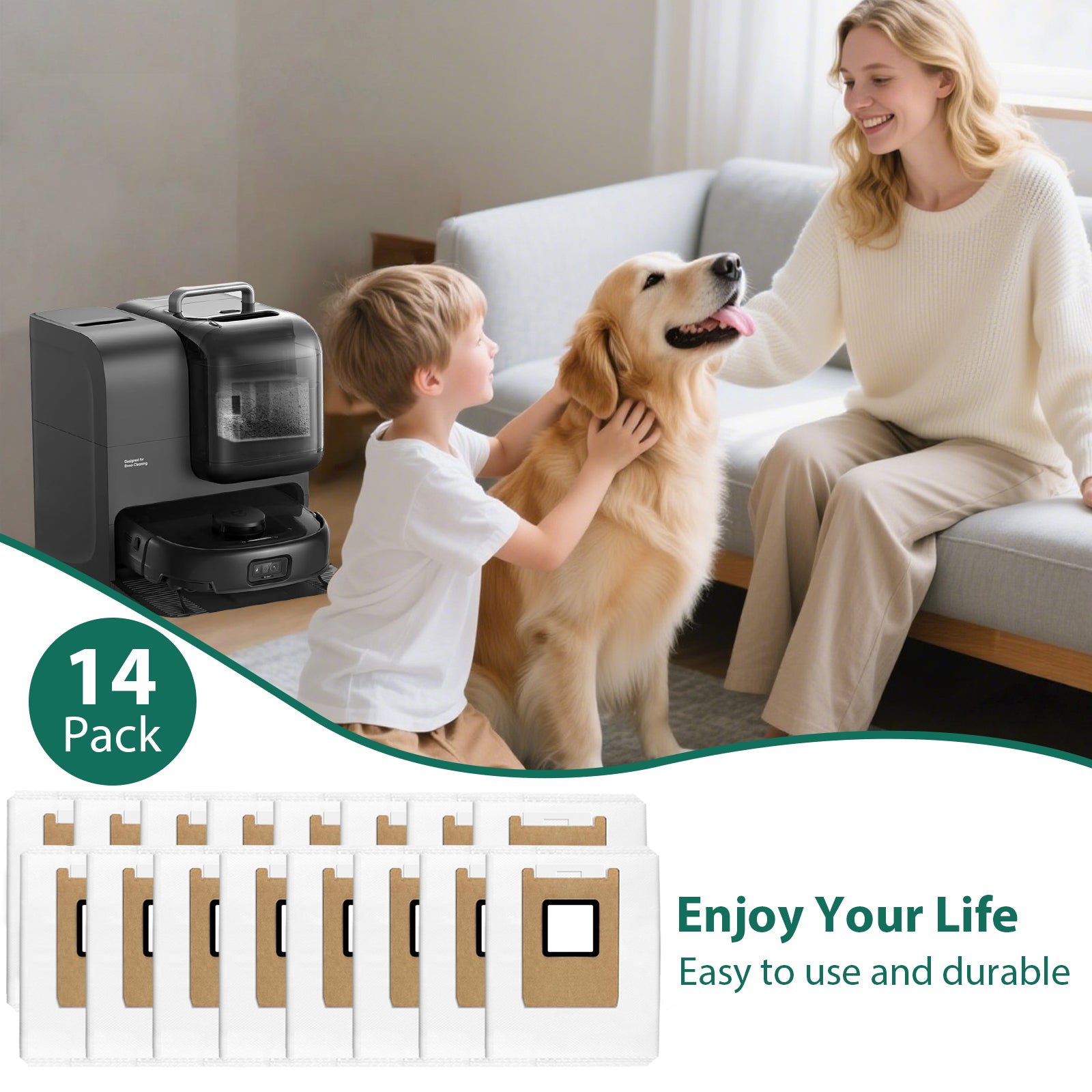 KGC 14 Pack Dust Bags for Eufy E28 Omni, Compatible with Eufy E25 Omni, for Eufy E28 Omni Robot Vacuum, 3.2L Large Capacity Replacement Vacuum Bags, Heavy-Duty 4-Layer Filtration